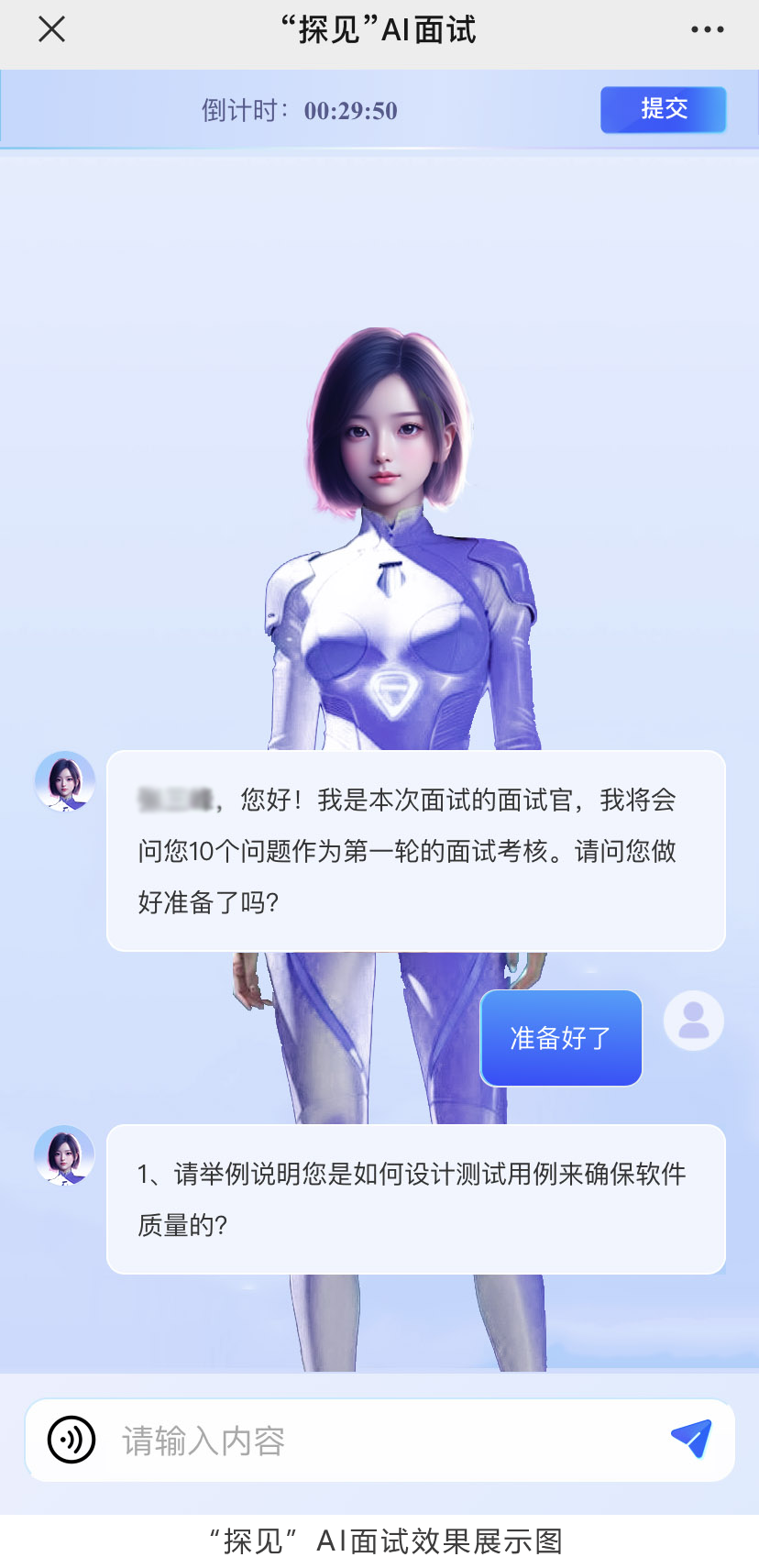对于高度匹配的候选人,“探见”自动安排AI面试,与数字人面试官进行在线面试,AI 面试题目均根据简历内容个性化生成,通过互动式对话,全方位评估候选人的能力和岗位适应性,依托大模型优秀的深度学习能力和自然语言处理能力,除了生成面试结果,还提供得分的归因分析,对候选人的在线面试表现进行详细分析并给出候选人的得分原因,给企业面试官做后续甄选提供参考,大幅提升招聘效率与质量。