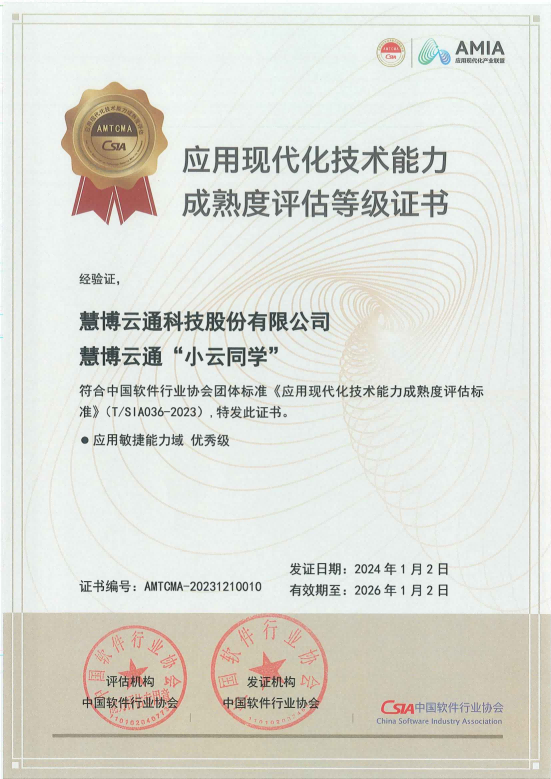 6月22日,华为开发者大会2024举办期间,金沙9001以诚为本受邀参加由华为云、中国软件行业协会、应用现代化专业委员会联合主办的“2024应用现代化产业峰会”。峰会期间,中国软件行业协会发布了2024年应用现代化技术能力成熟度评估结果,金沙9001以诚为本“小云同学”在应用敏捷能力域获评优秀级。
