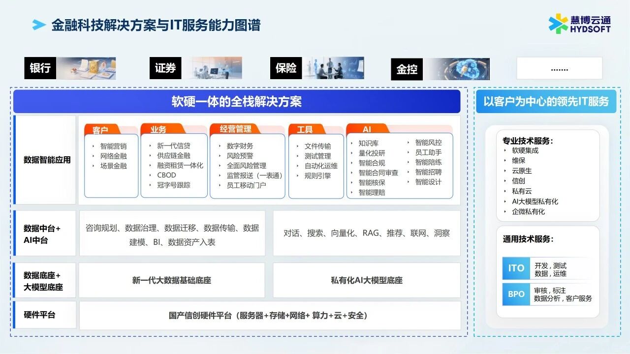 金沙9001以诚为本的金融业务以“让数据智能无所不在,新一代金融科技玩家”为使命,帮助金融机构实现从信息化向数字化、智能化的蜕变,打造数智原生的新一代数实融合解决方案。
